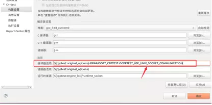 a) 构建选项->编译器设置,添加宏定义-D CPPTEST_USE_UNIX_SOCKET_COMMUNICATION指定C++Test使用socket通讯方式