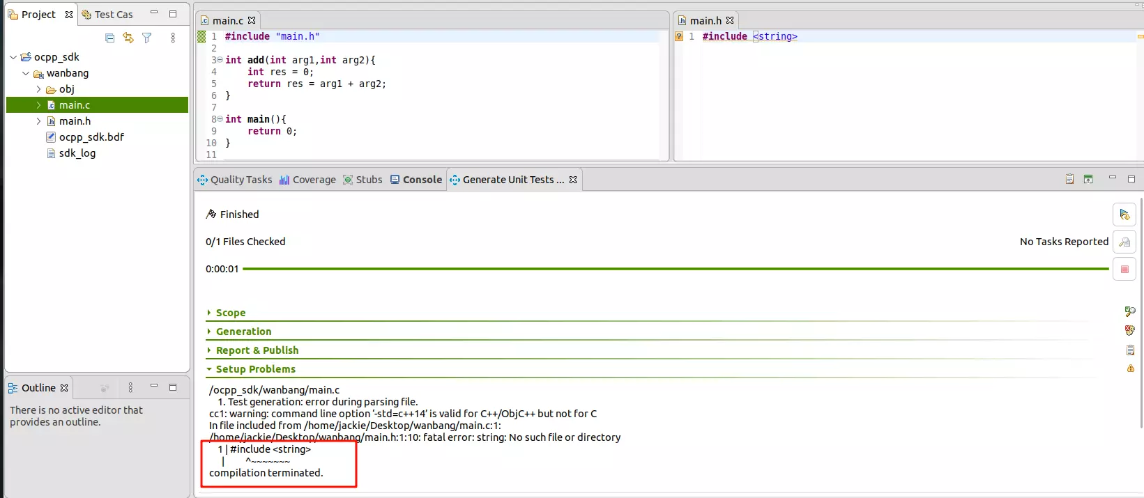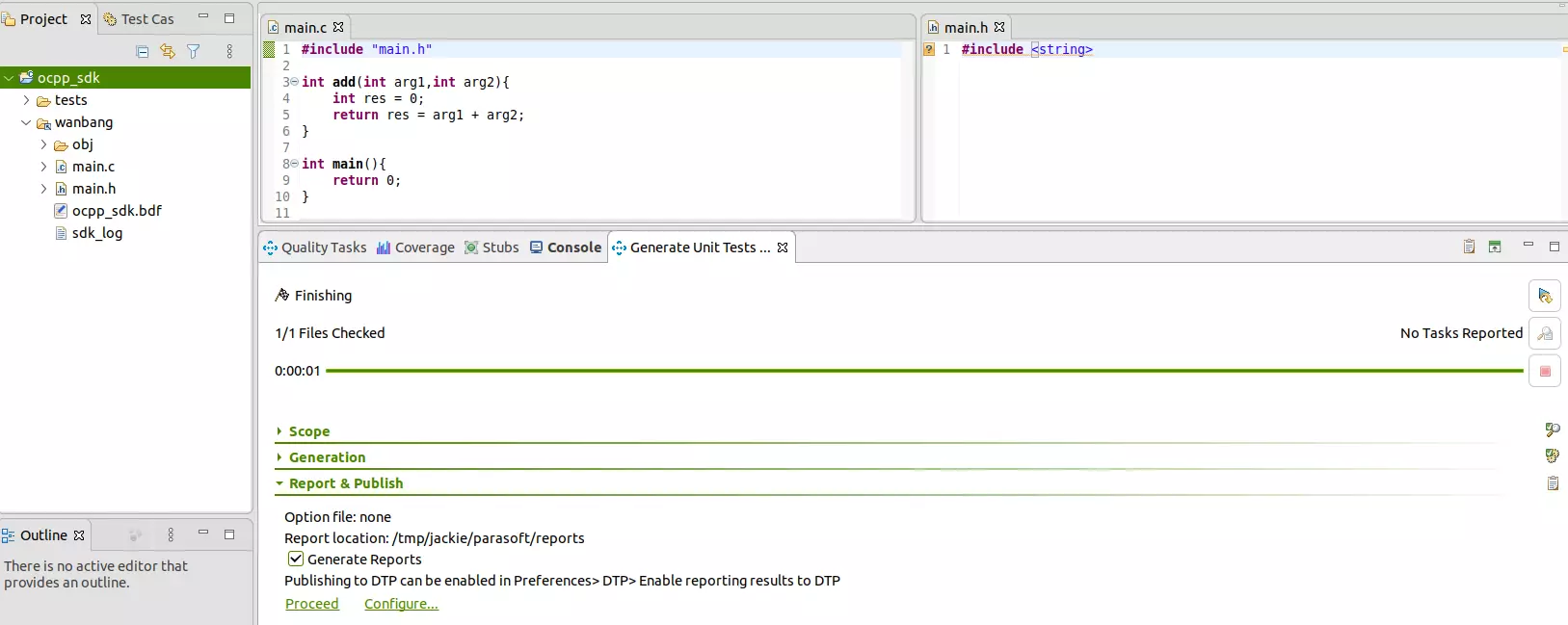 正是这种混合编程的复杂性,在为项目带来灵活性和性能优势的同时,也为自动化测试工具的集成带来了独特的挑战。下面将深入剖析一个在Parasoft C/C++test实践过程中遇到的典型问题:一个原本能够成功编译的C/C++混合项目,在执行工具的“Generate Unit Tests”功能后出现编译失败。