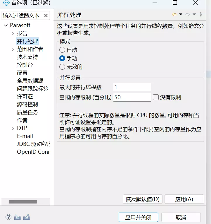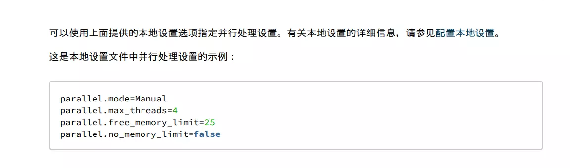 空闲内存限制(parallel.free_memory_limit)。该参数指定了在内存不足条件下应保持空闲的内存量,表示为应用程序可用总内存的百分比。当可用内存低于设定的阈值时,系统会自动减少并行线程数量以维持系统稳定性。