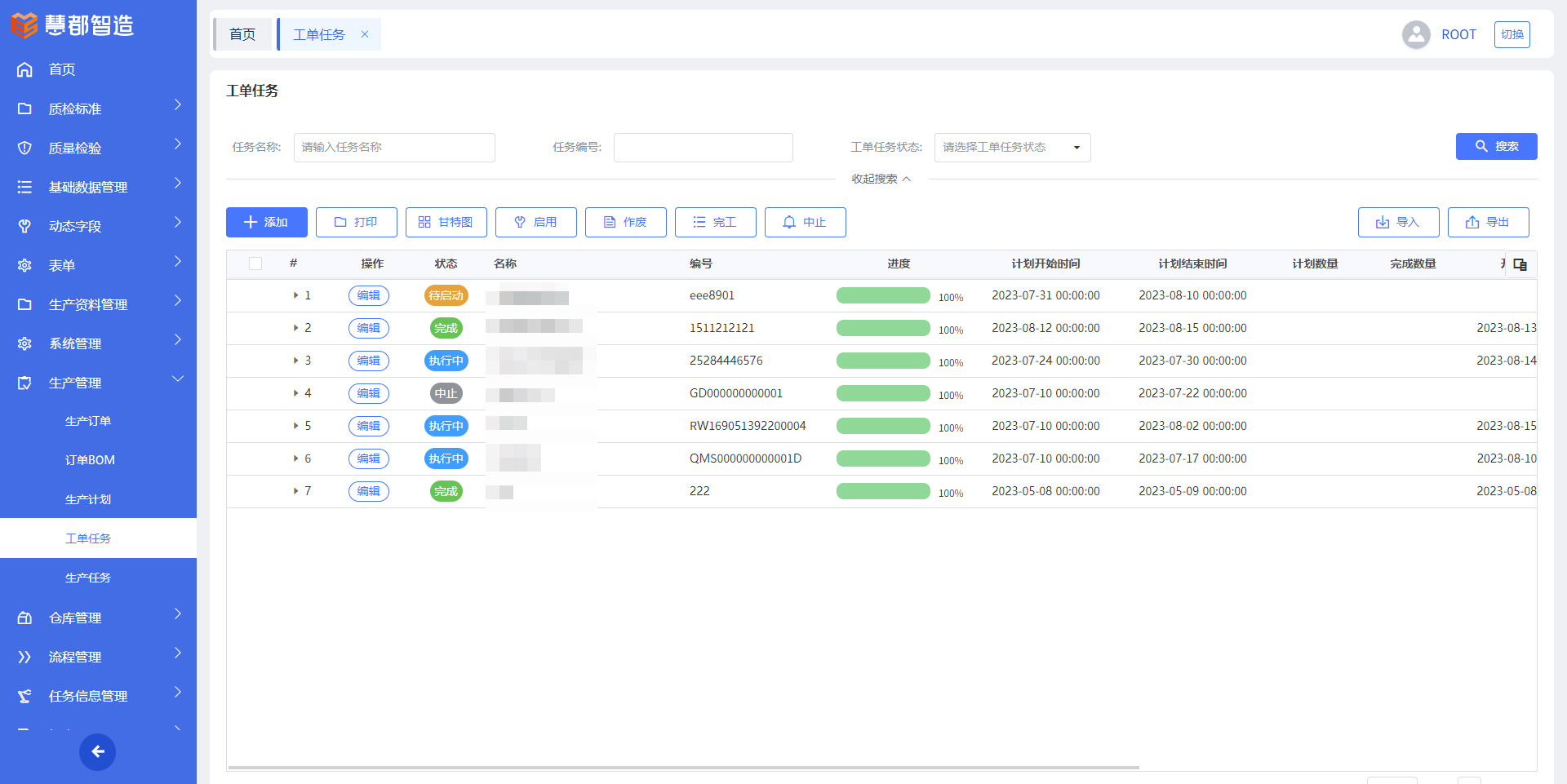 每个工单的状态(未开工、进行中、暂停、已完成)都会实时更新;